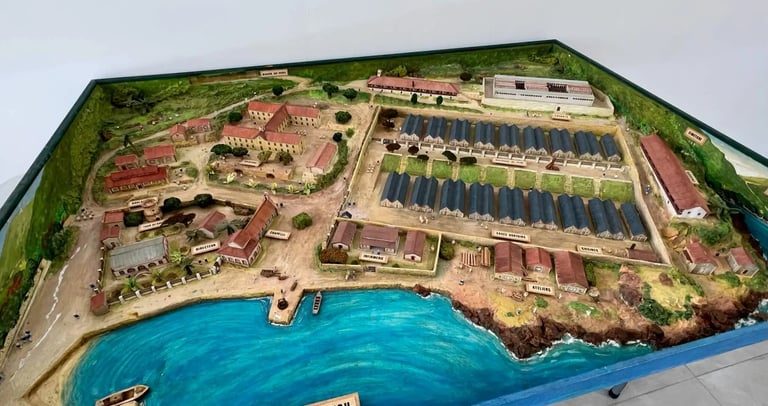 Si comme nous, vous arrivez un peu avant le début de la visite, prenez le temps de rentrer dans le local à l'accueil pour observer la maquette de cette ancienne structure. Vous retrouverez les bâtiments qui pour la plupart sont toujours présents, ce qui vous aidera à vous faire une idée de la taille du bagne une fois ce dernier terminé. Une vraie petite ville quoi !