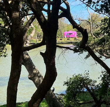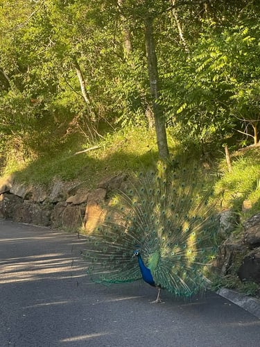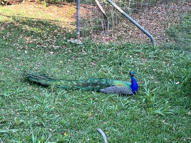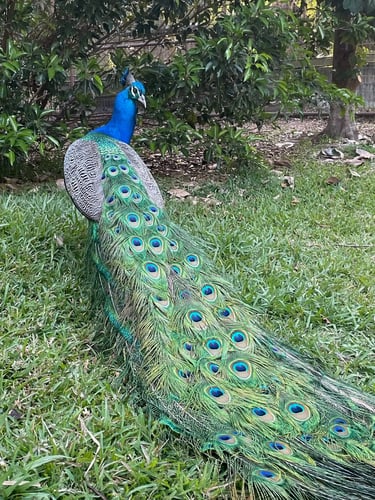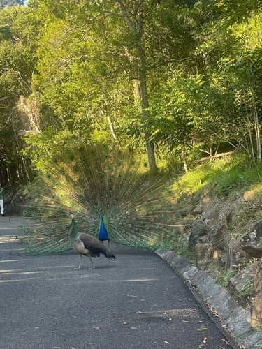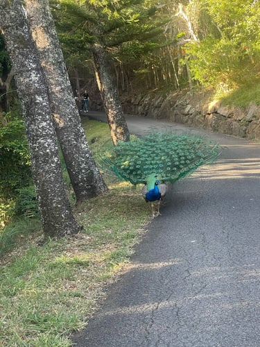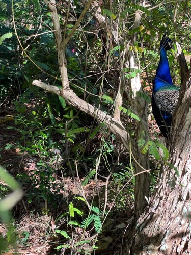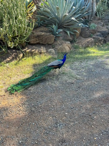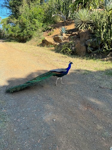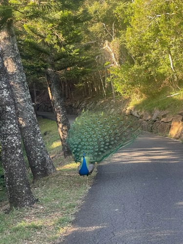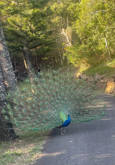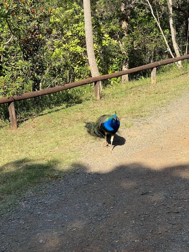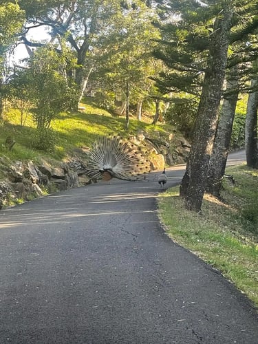 Enfin "tranquillement" ... On ne vous l'a pas mentionné encore, mais ce parc regorge de paons 🦚 qui déambulent en liberté. C'est super à voir d'ailleurs, mais ces derniers sont très vite attirés par votre déjeuner (of course – pas par vous malheureusement !) … Mais sinon, c’est vraiment chouette de les voir errer dans le parc tout au long de votre balade. 😊